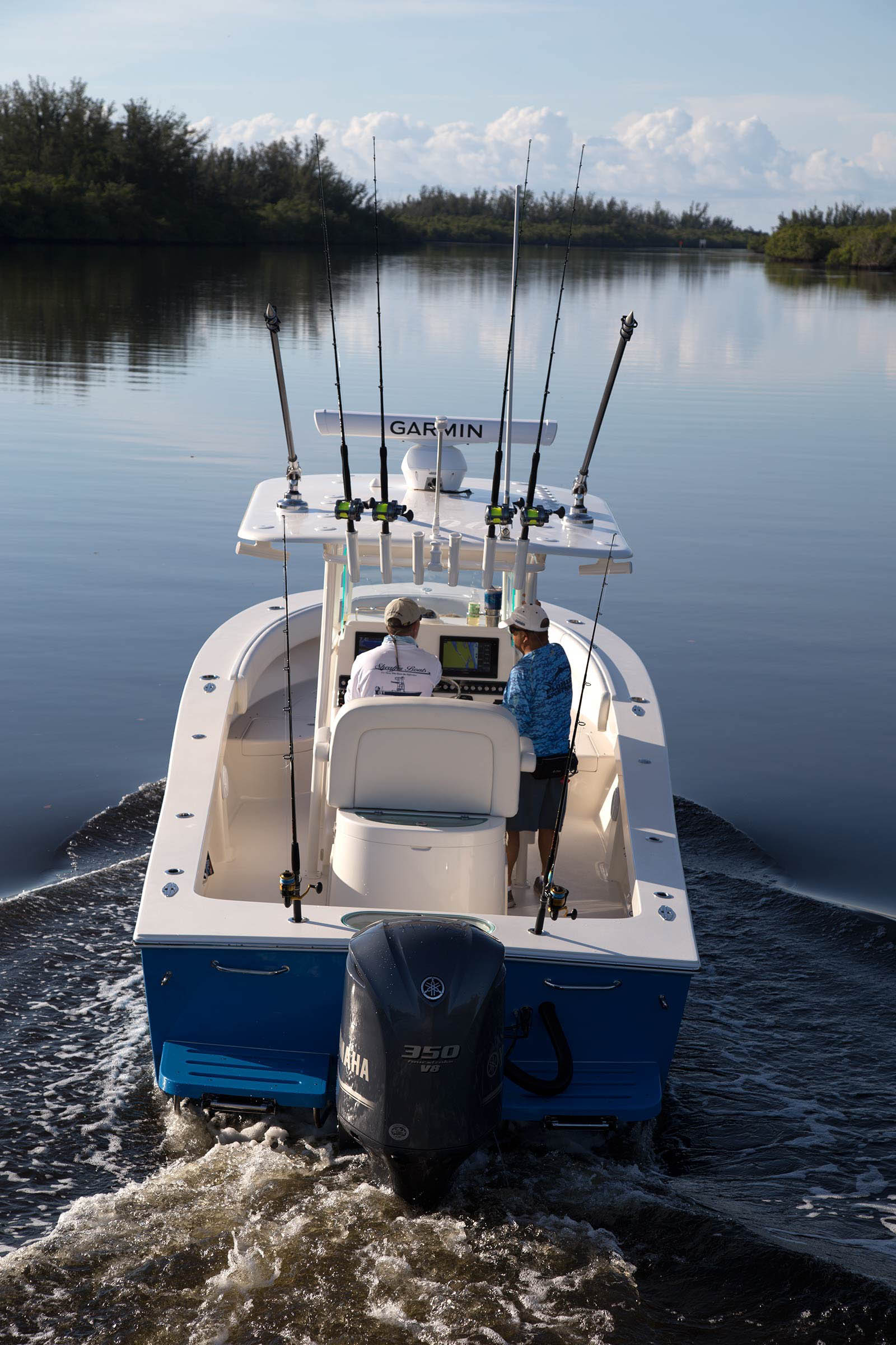 - Full transom with hydraulic scissor bracket with 15” lift for shallow water running and better engine performance